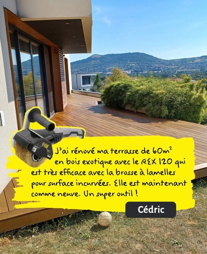 Rénovateur extérieur REX 120D. Pour rénover tous types de bois extérieur.