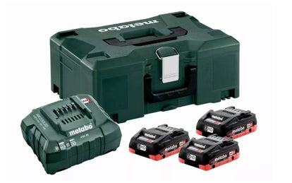 Pack complet Metabo composé de trois batteries LiHD 18V 4.0 Ah, un chargeur et un coffret MetaLoc.