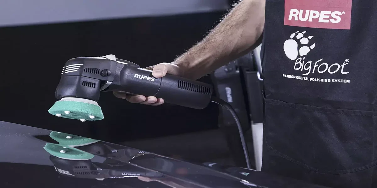 - La polisseuse parfaitement équilibrée, associée aux tampons de polissage en mousse Ø150/180 mm de la gamme BigFoot de RUPES, garantit une découpe rapide et une finition impeccable.