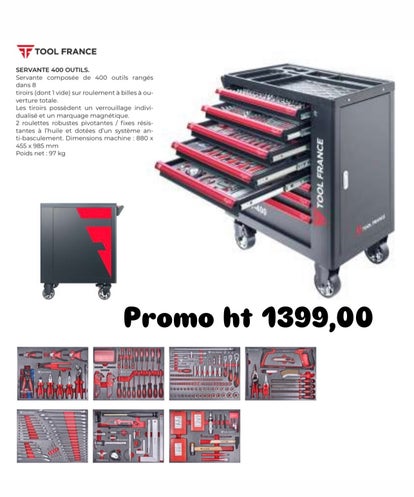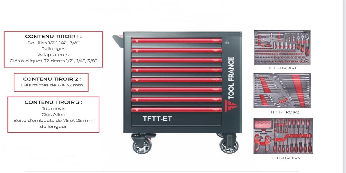 SERVANTE 400 OUTILS. Servante composée de 400 outils rangés dans 8 tiroirs