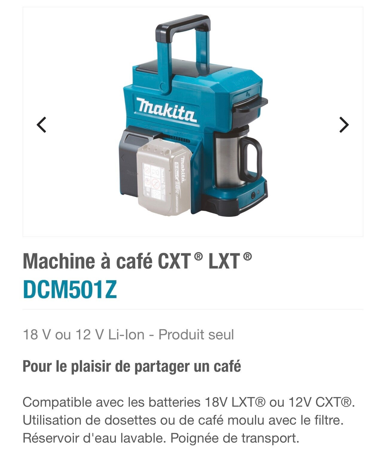Cafetiere makita pour batteries 18v livrée nue
