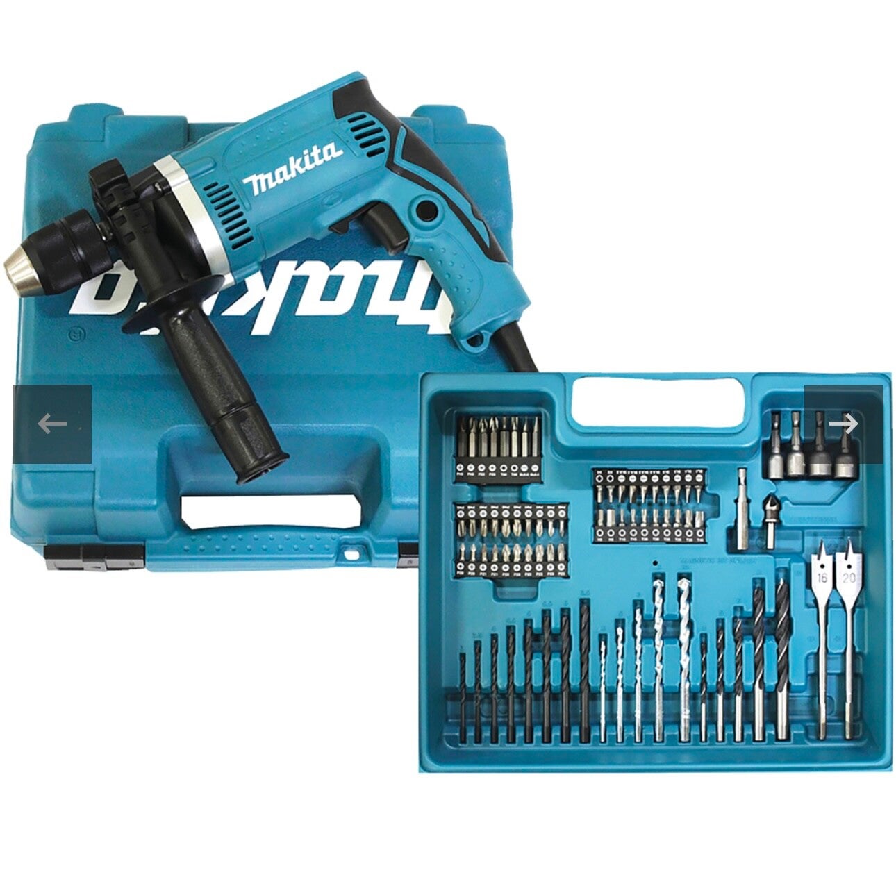 Perceuse à percussion MAKITA 710W + kit accessoires HP1631KX3