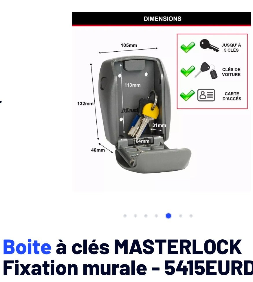 - La boite à clé MASTER LOCK n°5415EURD Select Access vous permet de partager en toute sécurité vos clés avec les personnes de votre entourage.