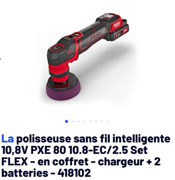 La polisseuse sans fil intelligente 10,8V PXE 80 10.8-EC/2.5 Set FLEX - en coffret - chargeur + 2 batteries - 418102