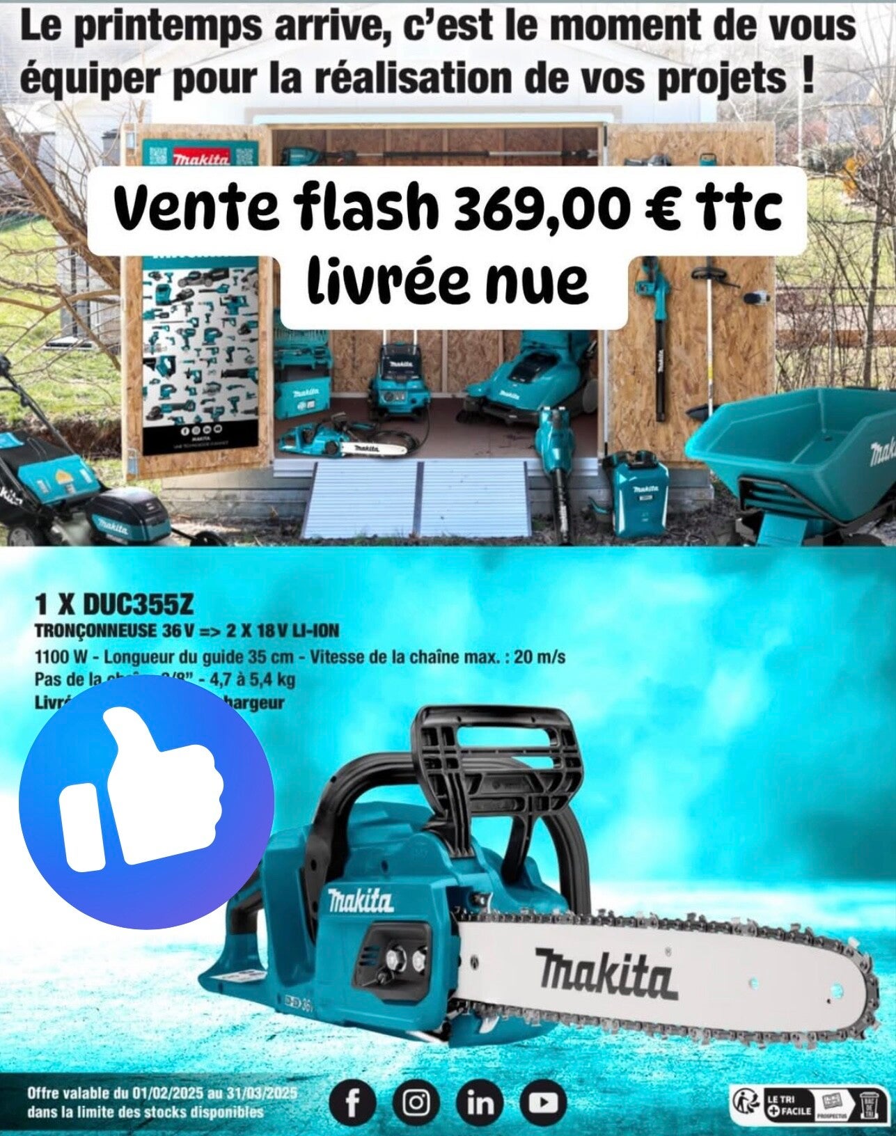 1 X DUC355Z TRONÇONNEUSE 36 V => 2 X 18 V LI-ION 1100 W - Longueur du guide 35 cm -