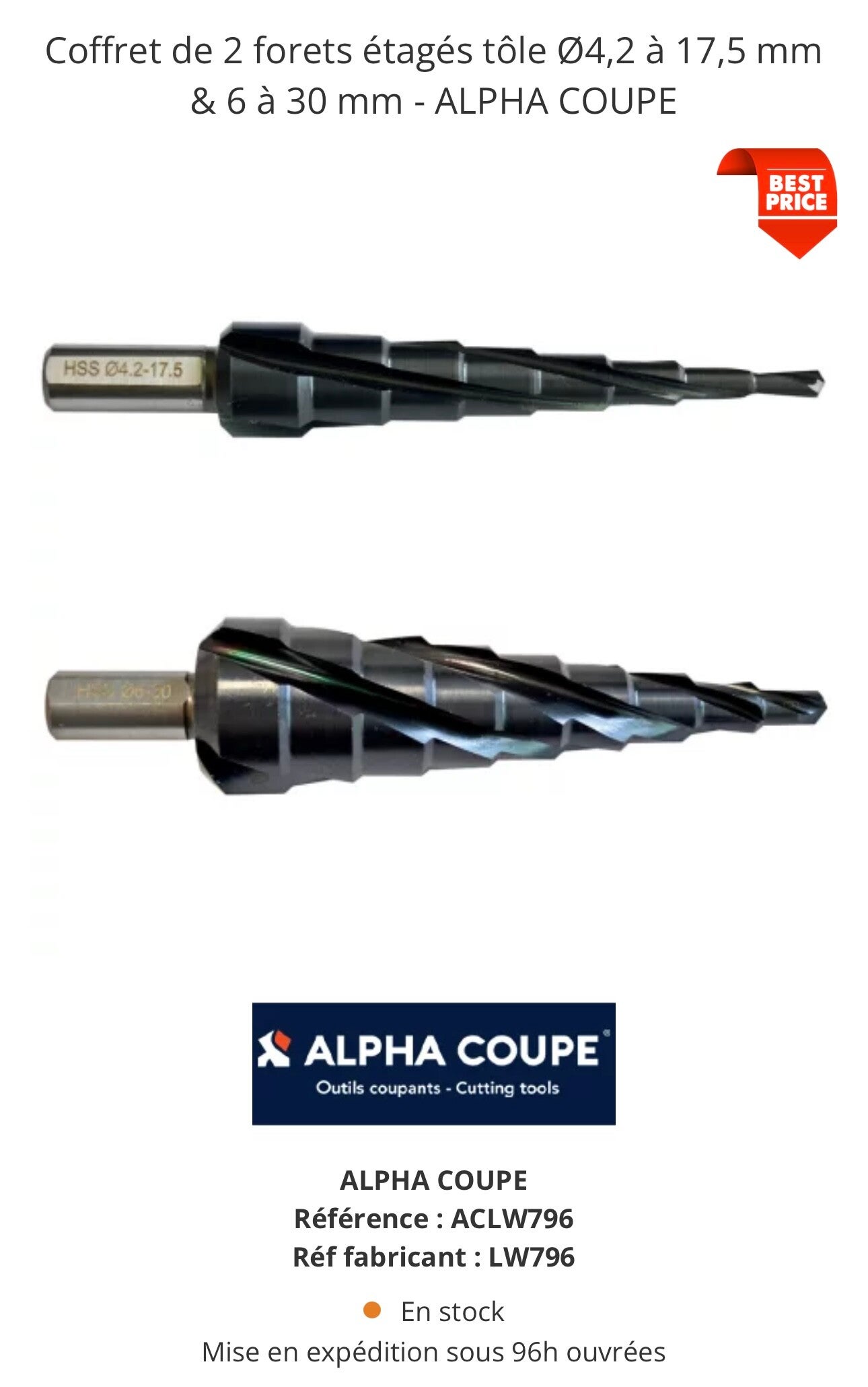Coffret de 2 forets étagés tôle 04,2 à 17,5 mm & 6 à 30 mm, par le fabricant Alpha Coupe.