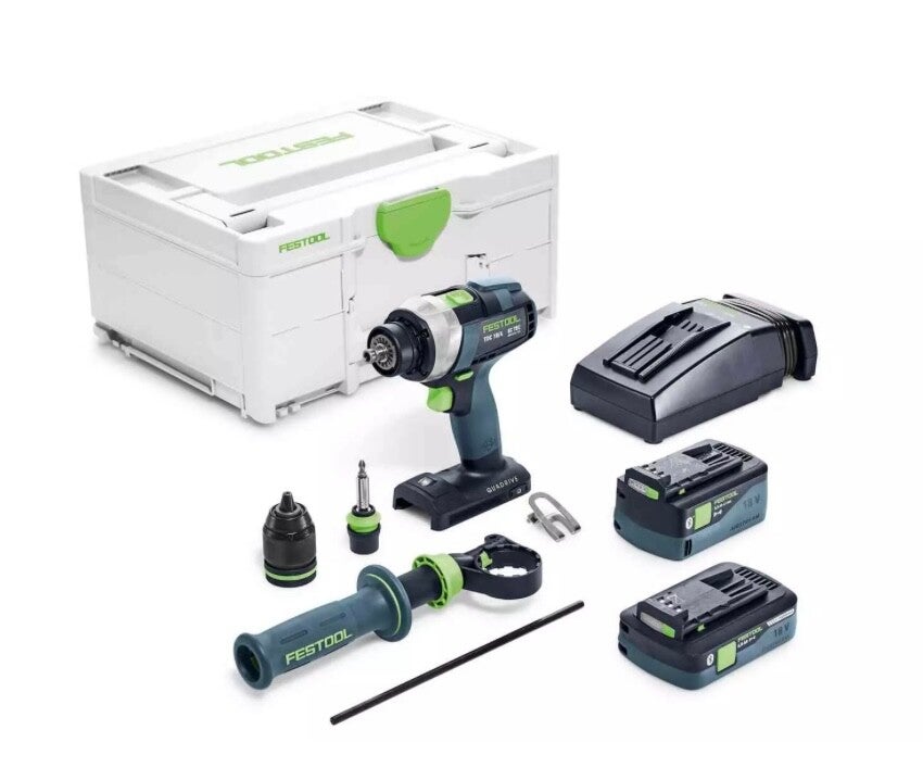 Perceuse visseuse sans fil TDC 18/4 5.0/4.0 I-PLUS QUADRIVE - FESTOOL - 2 batteries 18V 4.5Ah et 4.0Ah - chargeur - Systainer - 577649
