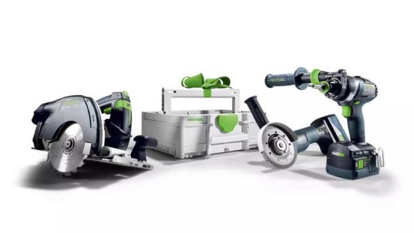 - Ce kit d'outils sans fil avec SYS-ToolBox pratique présente des équipements indispensables pour vos projets de construction en bois, y compris les moteurs EC-TC puissants, durables et sans charbons dans chaque outil. Pour par ex. découper des poutrelles ou des planches, vous trouverez la scie circulaire à capot basculant sans fil HKC 55 avec batterie de 18 V puissante dans le kit qui facilite des coupes précises et reproductibles en toute sécurité grâce aux rails de guidage combinables. La perceuse-visseuse à percussion sans fil TPC 18/4 convient parfaitement pour le montage de constructions en bois et perce également dans la maçonnerie. Son système FastFix garantit que vous pouvez alterner à tout moment les embouts variés. La meuleuse d'angle sans fils AGC 18 fait partie de la livraison pour tronçonner des matériaux durs. Grâce au moteur EC-TEC encapsulé et sans charbons et au système électronique protégé, elle est résistante à la poussière et durable. La vitesse réglable en continu de 4 500 à 8 500 tr/min garantit un tronçonnage et un meulage adaptés au matériau. Rangés en toute sécurité dans le Systainer³ pratique, vous transportez les outils sans fil et la SYS-Toolbox gratuite et comprise dans la livraison de l'atelier jusqu'au prochain chantier. Le « plus » signé FESTOOL : unique en son genre, le SAV Premium (gratuit les trois premières années) vaut pour les outils sans fil et même pour les batteries ainsi que pour les chargeurs (pour plus d'informations, rendez-vous sur festool.fr/services).