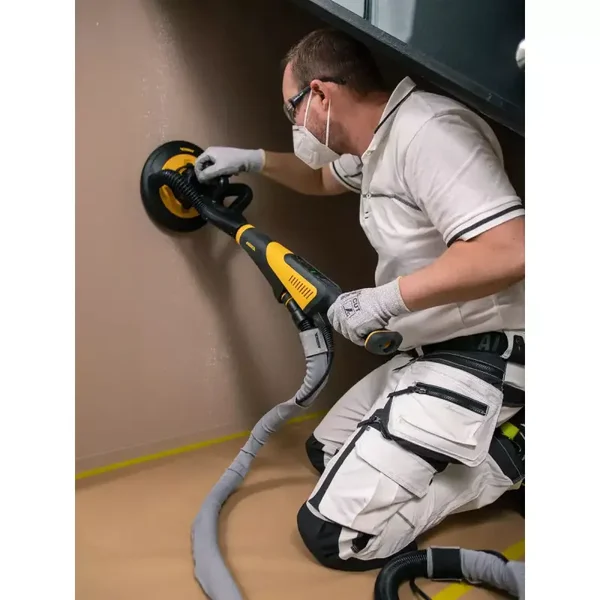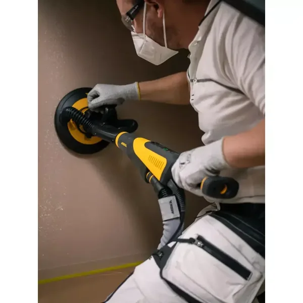 - Un bras d'extension peut être fixé à la ponceuse pour plus de portée.