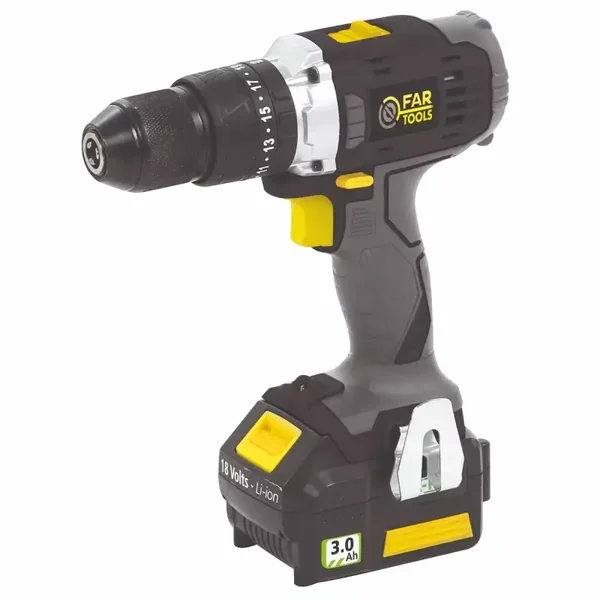 - La batterie 18V développe 40Nm de couple. Variateur de vitesse; mandrin de 13mm en métal.