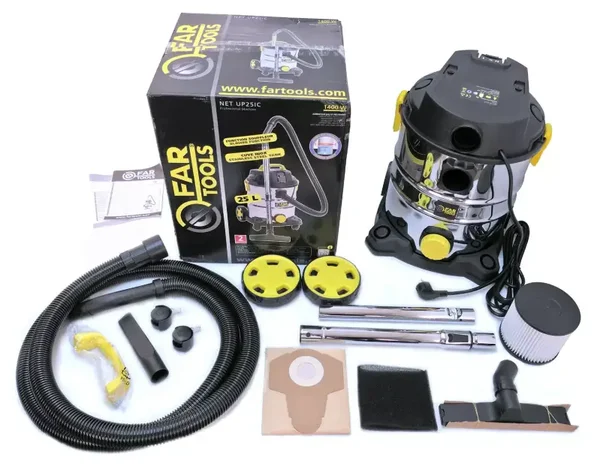 Aspirateur liquides et poussières - 1400 W - Cuve inox 25 L avec Prise asservie temporisée - FAR TOOLS - 101032
