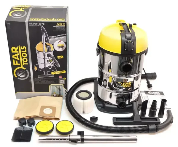 Aspirateur à décolmatage manuel eau, poussière et plâtre - 1200 W - Cuve en inox 30 L - FAR TOOLS - 101211