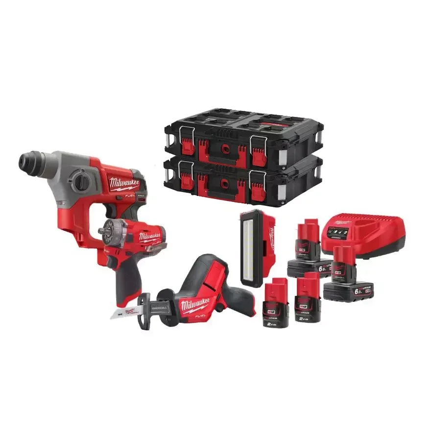 Pack de 4 outils 12V - M12β’ PROMO POWERPACK - M12 FPP4C-624P - MILWAUKEE - avec 4 batterie 12V (2x2.0Ah + 2x6.0Ah) + chargeur + 2 toolbox - 4933492515