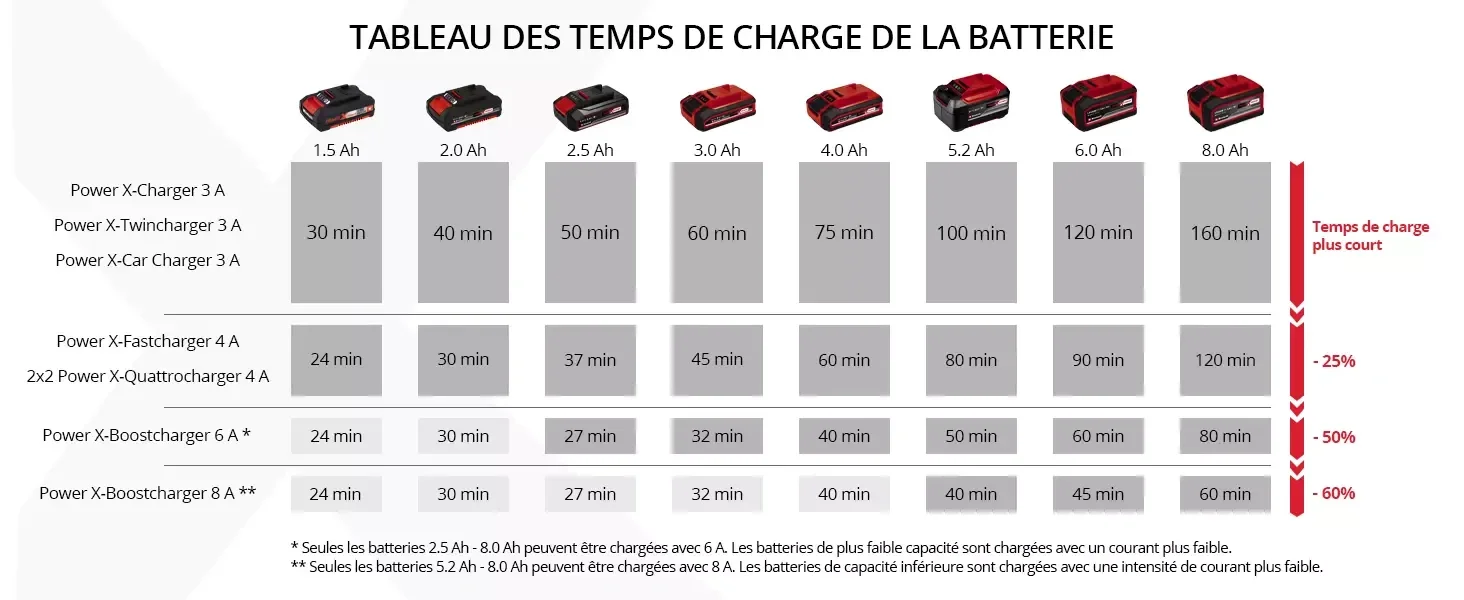 Chaque batterie de la gamme Power X-Change Einhell peut être combinée en toute flexibilité avec tous les appareils et chargeurs de cette même gamme.