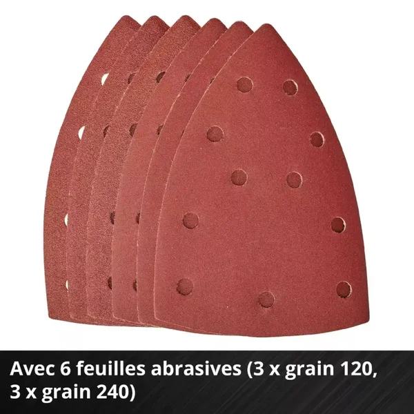 - Avec 6 feuilles abrasives (3x P120 / 3x P240).