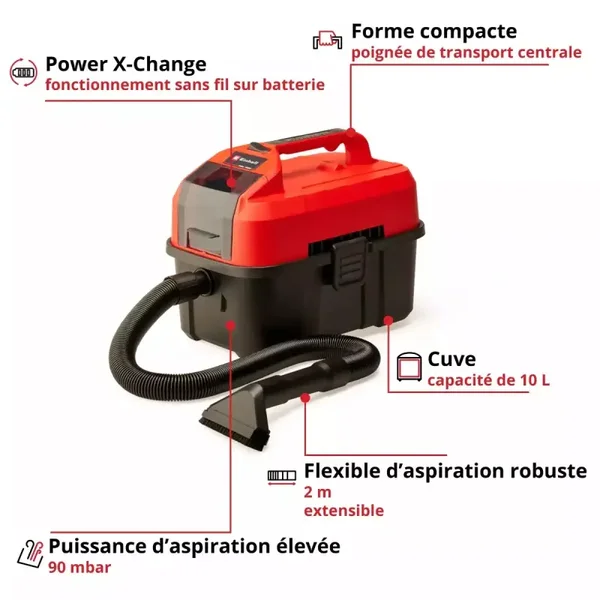 Aspirateur eaux et poussières sans fil TE-VC 18/10 Li-Solo - EINHELL - 2347160
