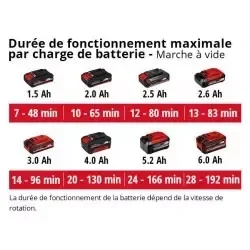 - Recommandation pour une performance optimale : batterie 2,5 Ah ou supérieure.