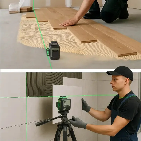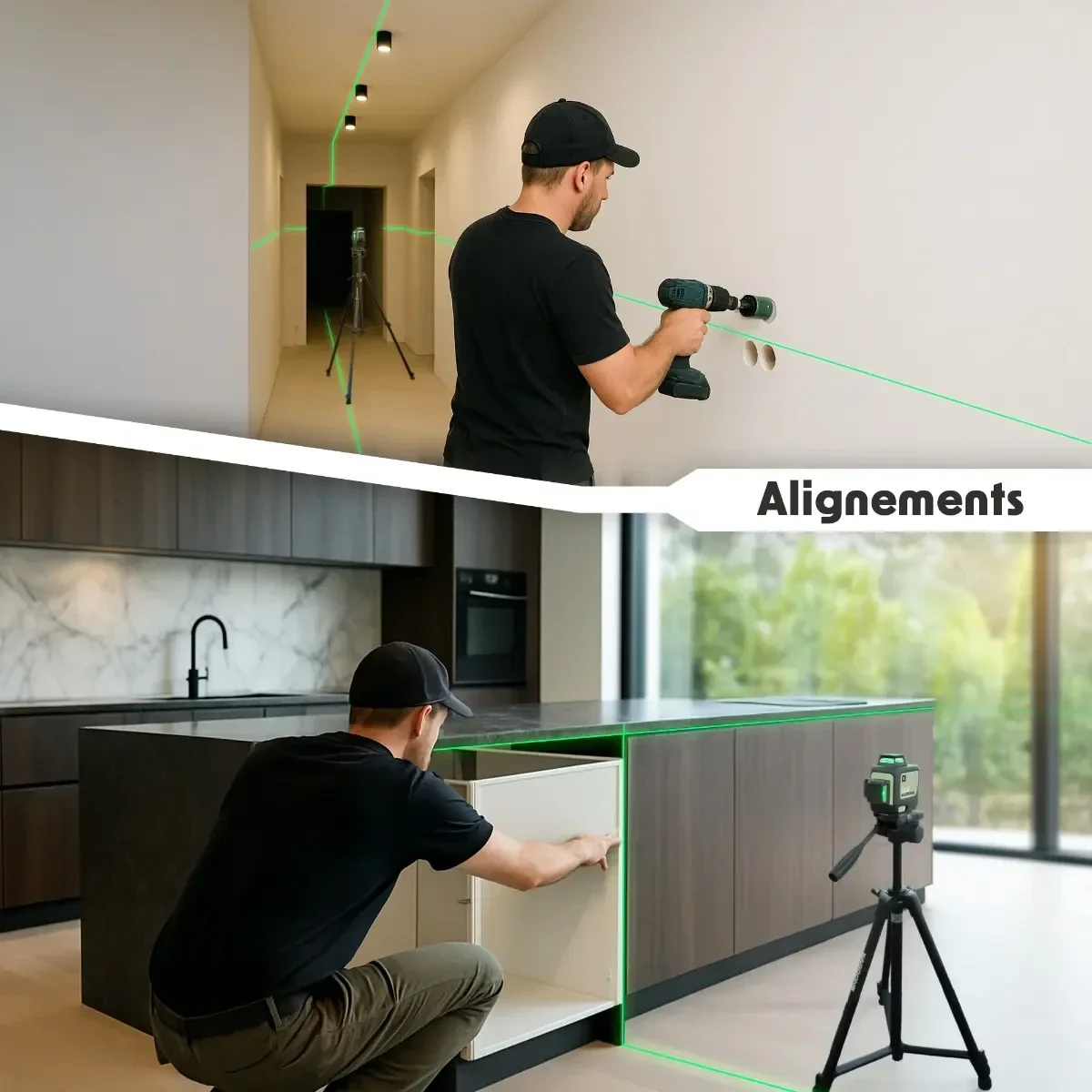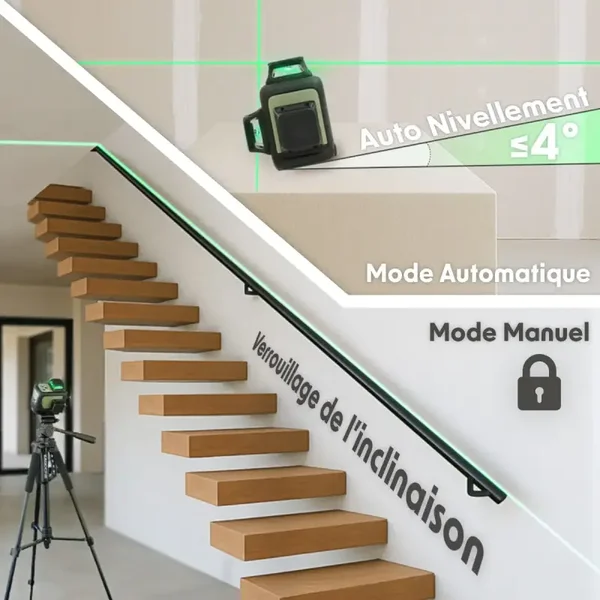 - 3 faisceaux laser verts 360° : 1 horizontal + 2 verticaux