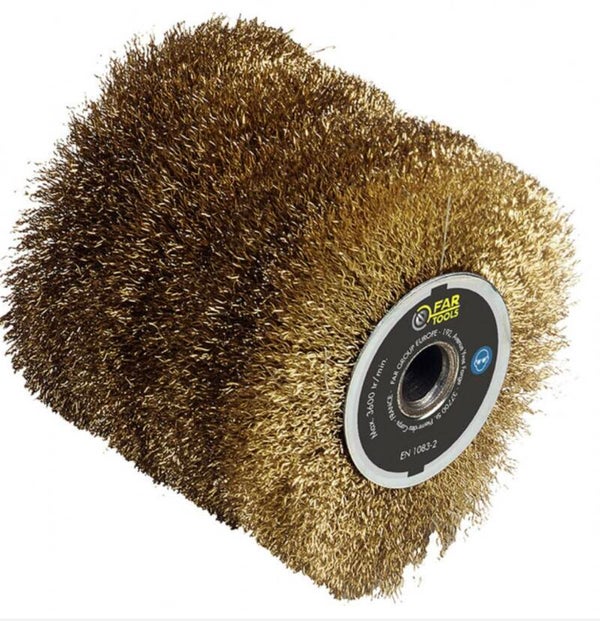 - 1 x Brosse fil laitonné 0,3 mm pour un décapage doux sur tous types de surfaces, y compris le bois, la pierre et le métal.