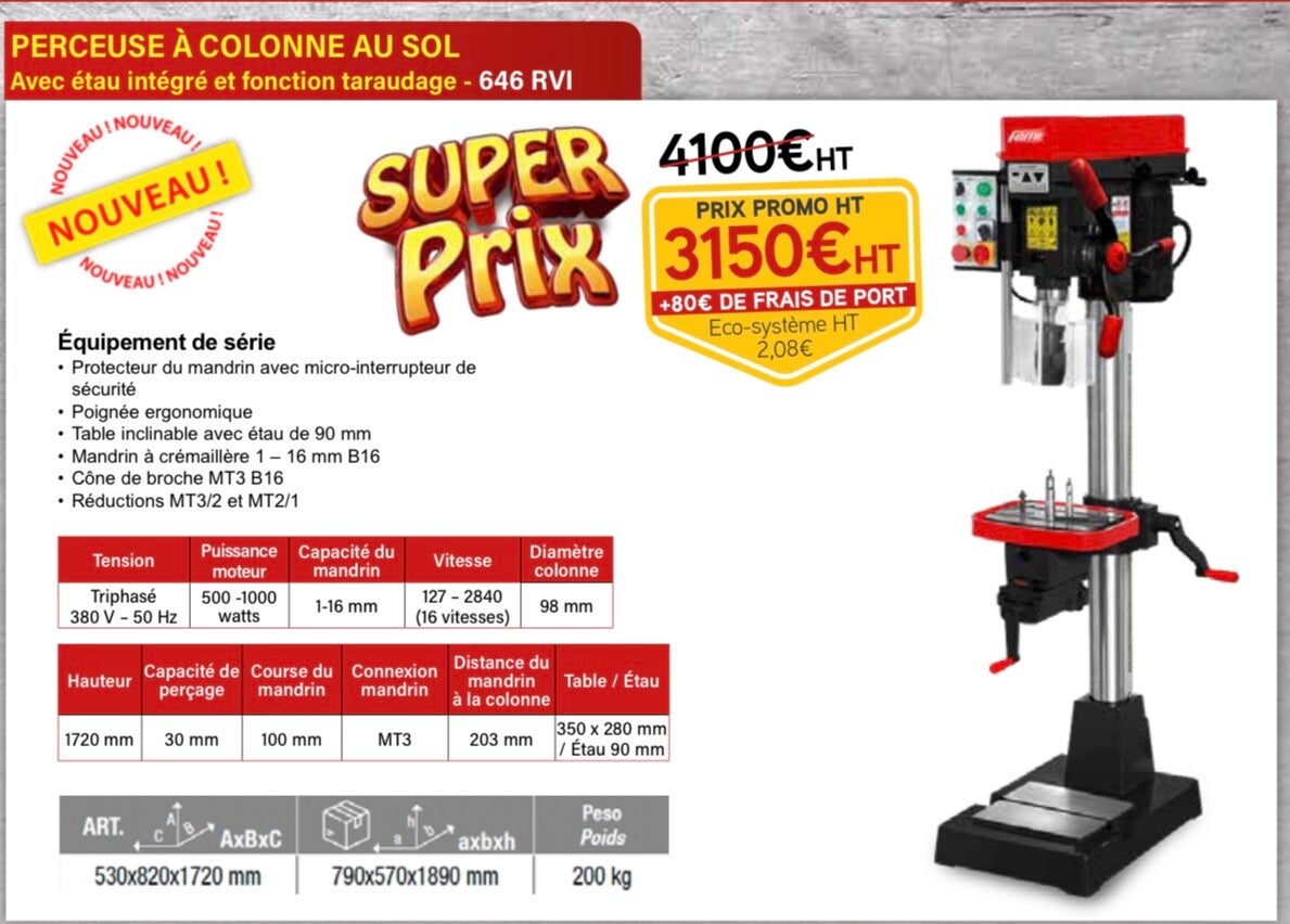 PERCEUSE À COLONNE AU SOL Avec étau intégré et fonction taraudage - 646 RVI