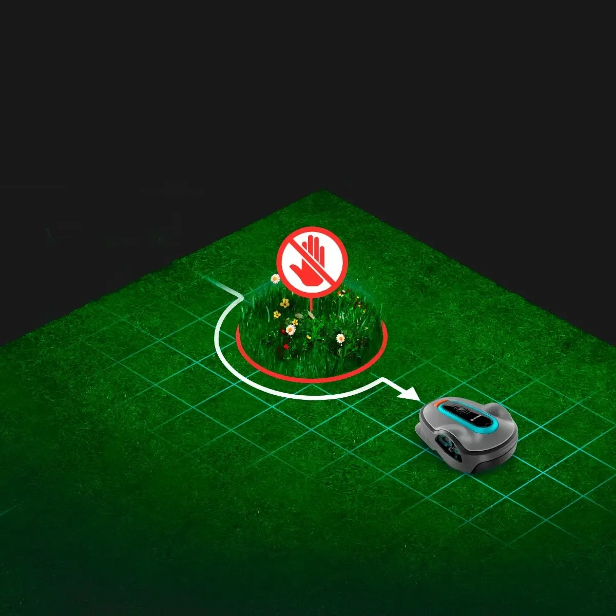 CorridorCut : cette fonctionnalité et la roue arrière pivotante du robot lui permettent de tondre même dans les passages étroits (jusqu'à 60cm)