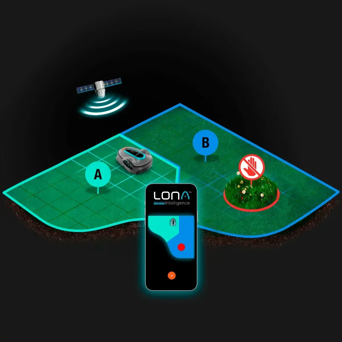 LONA est une technologie basée sur l'intelligence artificielle qui apprend, cartographie et s'adapte à chaque jardin.