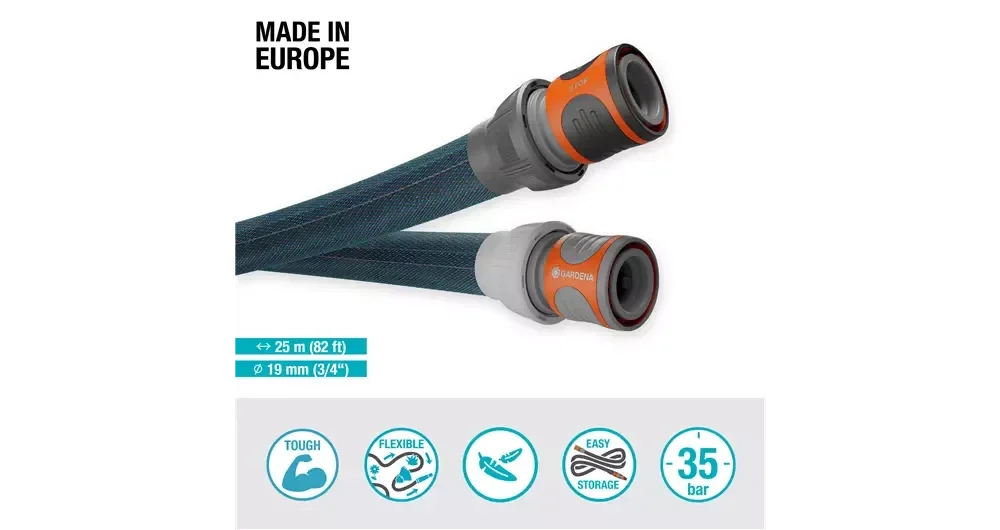 - Le tuyau textile Liano Xtreme 19 mm (3/4"), 30 m de GARDENA offre un soutien optimal lorsque vous souhaitez déplacer rapidement une grande quantité d'eau.