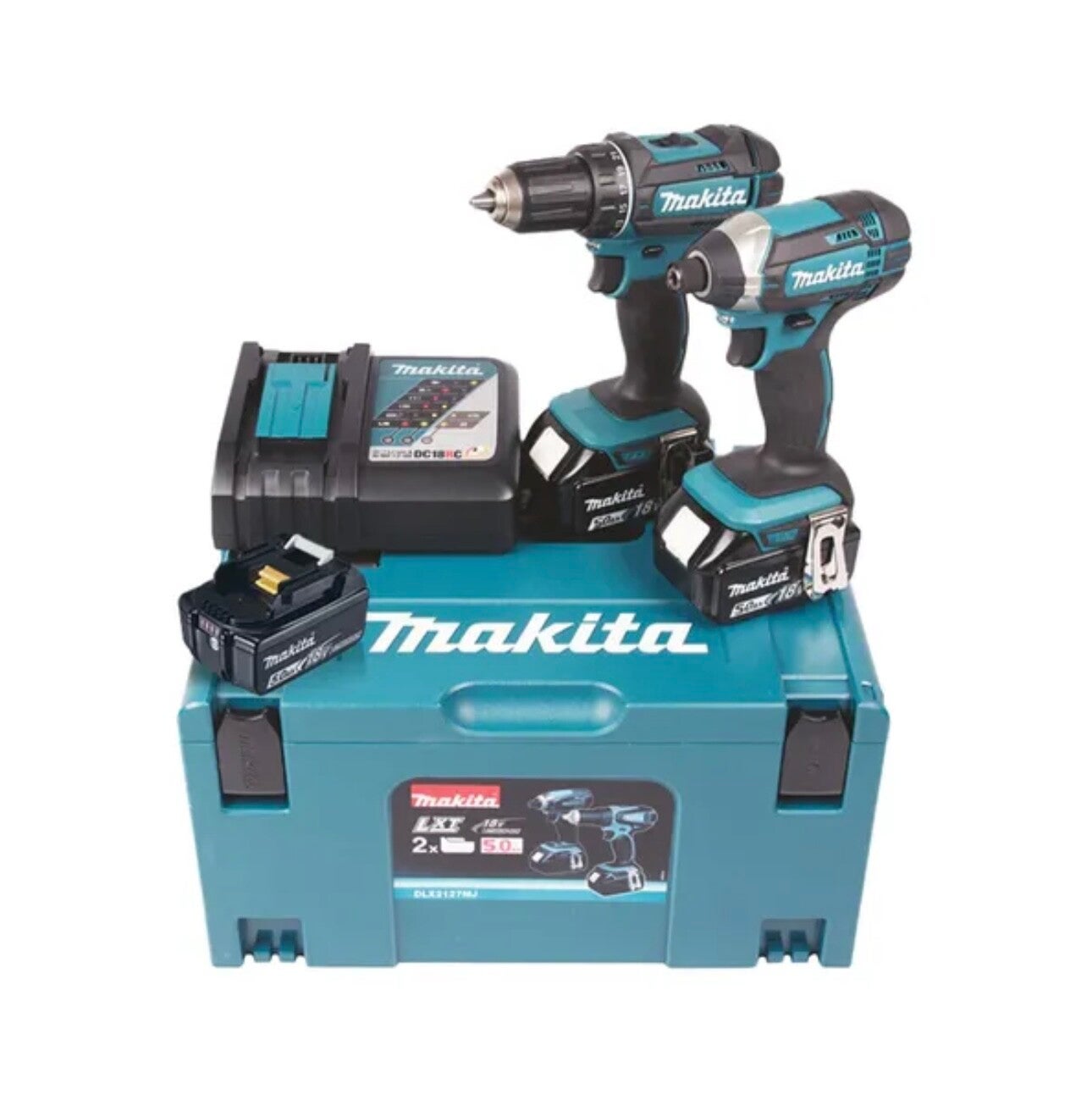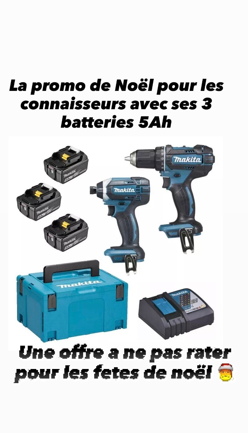 Pack de 2 machines 18V - Perceuse visseuse Ø 13 mm DDF482 + Visseuse à chocs 165 Nm DTD152 - MAKITA - avec 3 batteries 18V 5Ah + chargeur rapide + MakPak - DLX2127TJ1
