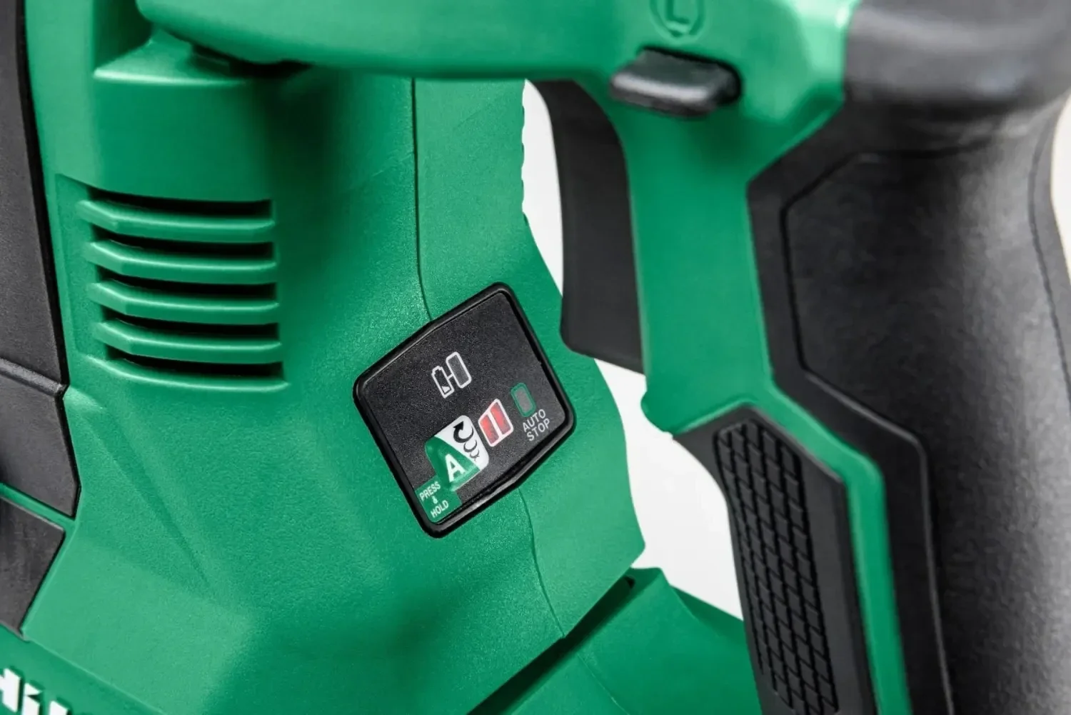 Il dispose de trois modes : perçage, perçage avec percussion, et burinage. Son système RFC (Reactive Force Control) améliore la sécurité en arrêtant le moteur en cas de blocage. Il est également doté d’un éclairage LED, d’un interrupteur à vitesse variable, et d’une poignée softgrip pour un confort optimal.