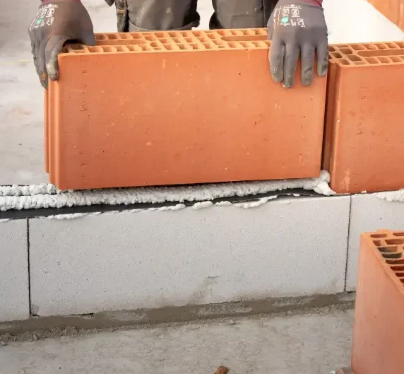 - Collage certifié de structures porteuses en briques céramiques de construction rapide, blocs de béton cellulaire ou briques silico-calcaires.