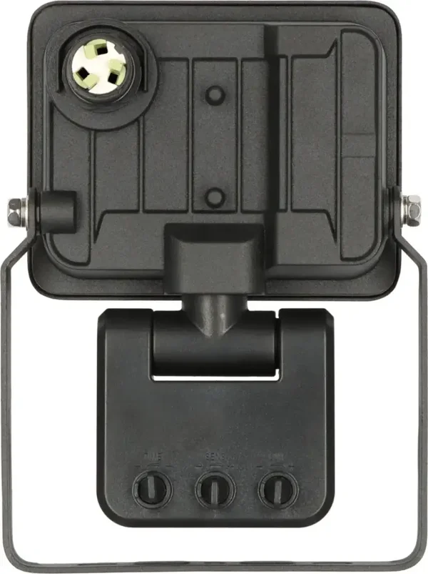 Projecteur LED extérieur muni d'un détecteur de mouvements infrarouge avec une portée jusqu'à 10m, secteur de capture 180°, durée de fonctionnement réglable de 10 sec à 5 min et capteur crépusculaire.