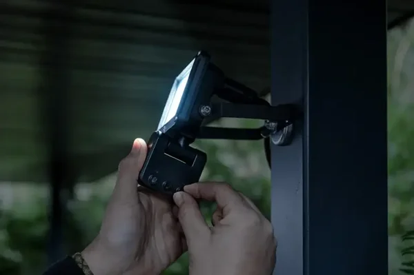 Phare LED extérieur avec détecteur de mouvements, idéal pour l'éclairage automatique des allées, entrées de garage, passages - un moyen de dissuasion efficace contre l'effraction et le vol.
