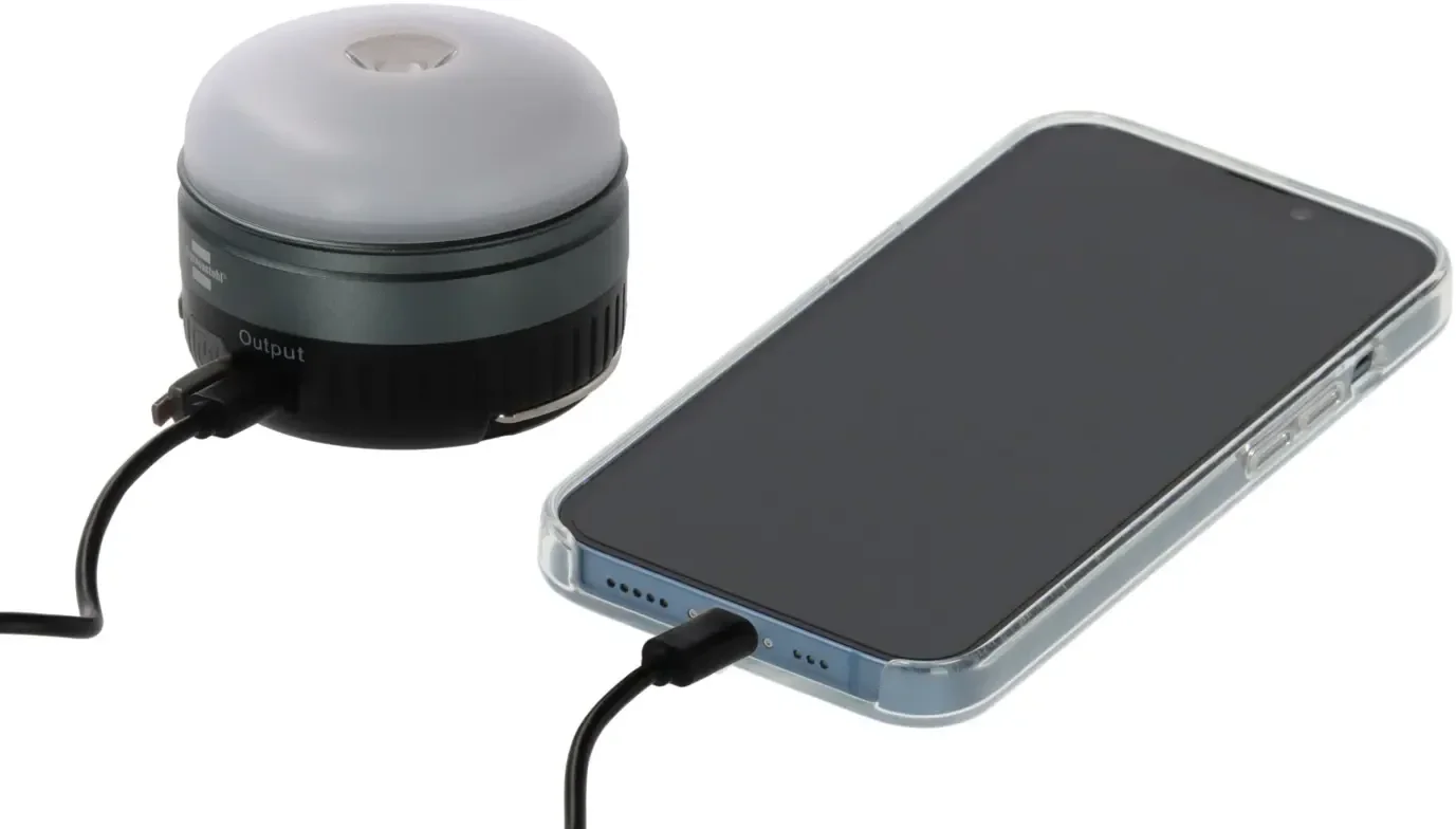 Lampe LED rechargeable via l'USB C input - fonction Powerbank (batterie externe de secours) 5VDC/2A disponible via l'USB C output - recharger votre smartphone, utile en cas de d'urgence ou en voyage.