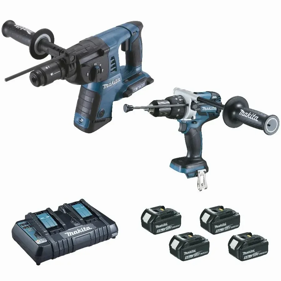 Perforateur DHR264 MAKITA + Perceuse DHP481- MAKITA - avec 4 batteries 18V 5.0Ah - chargeur - MakPac - DLX2101PTJ