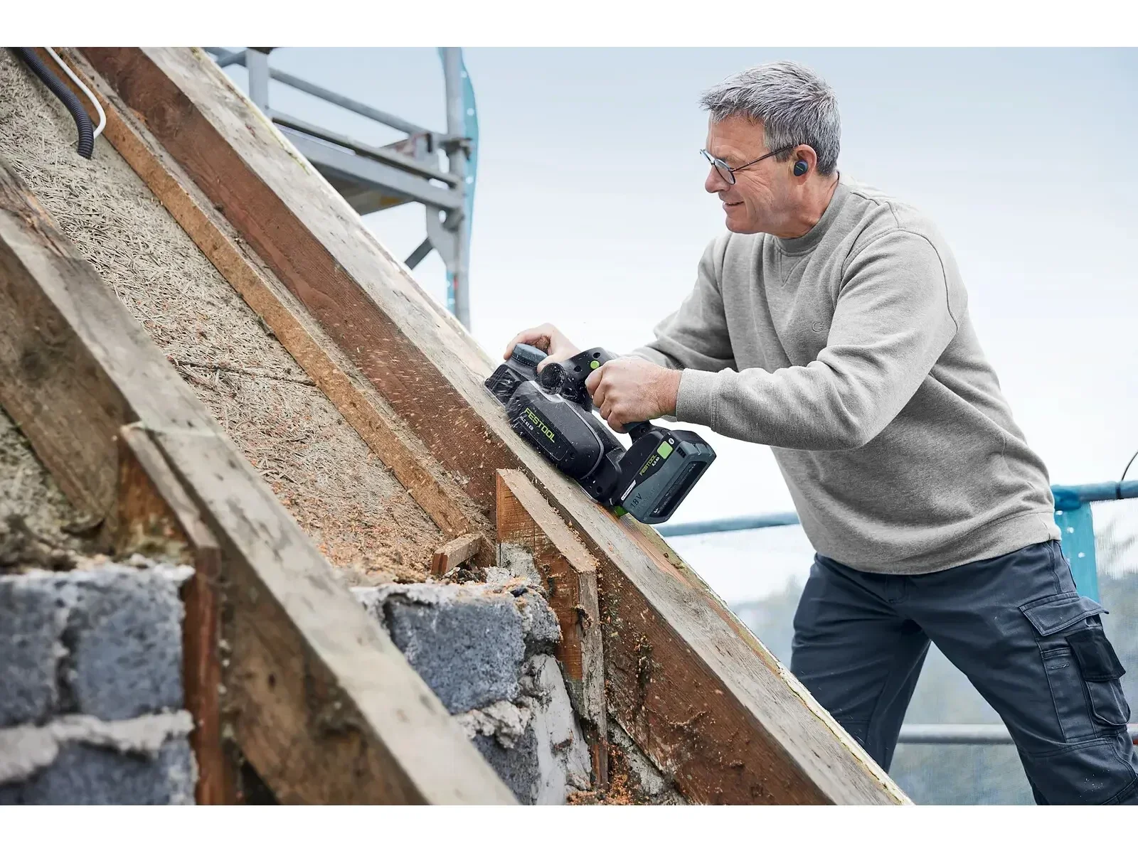 Maniable, le rabot sur batterie HLC 82 est un outil fiable à vos côtés sur le chantier comme à l'atelier, toujours prêt pour des opérations d'ajustage rapides. Chanfreinage de poutres, jointures des chants de cloisons à ossature bois, feuillures sur des portes, ajustage de plinthes ou de listels : le rabot sur batterie vous offre une grande souplesse d'utilisation. Combinez votre HLC 82 avec une batterie Festool 5,0 Ah Li-HighPower ou 8,0 Ah Li-HighPower.