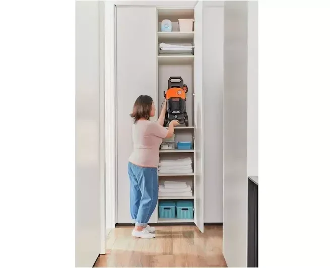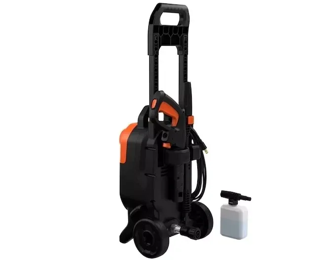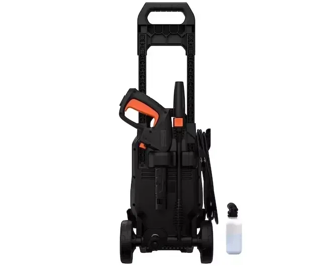 - Doté d'une longue poignée et de roues, ce nettoyeur haute pression est facile à déplacer et à ranger, tandis que le compartiment à accessoires intégré maintient tout ensemble.
