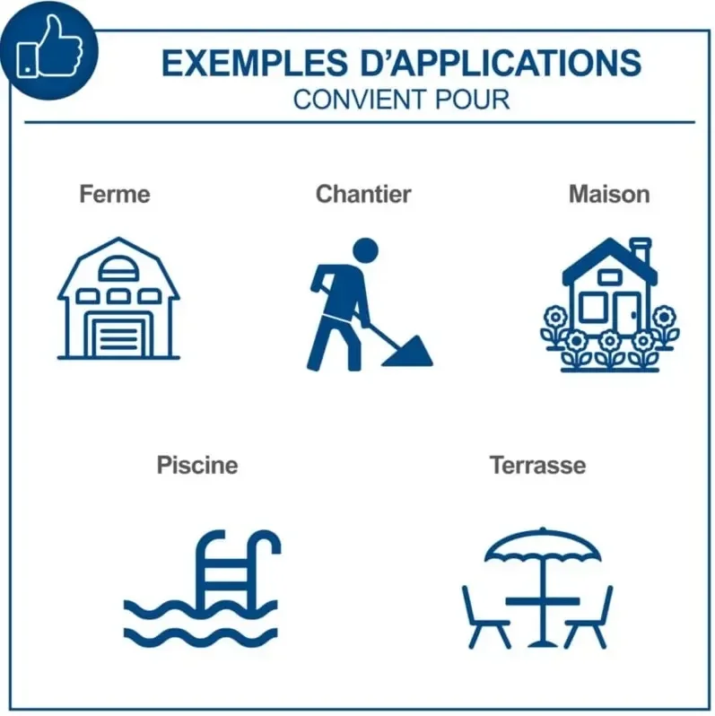Grâce au débit maximal de 450 l/h, l’appareil est adapté aux différents travaux de nettoyage. Le rendement est de l’ordre de 50 m²