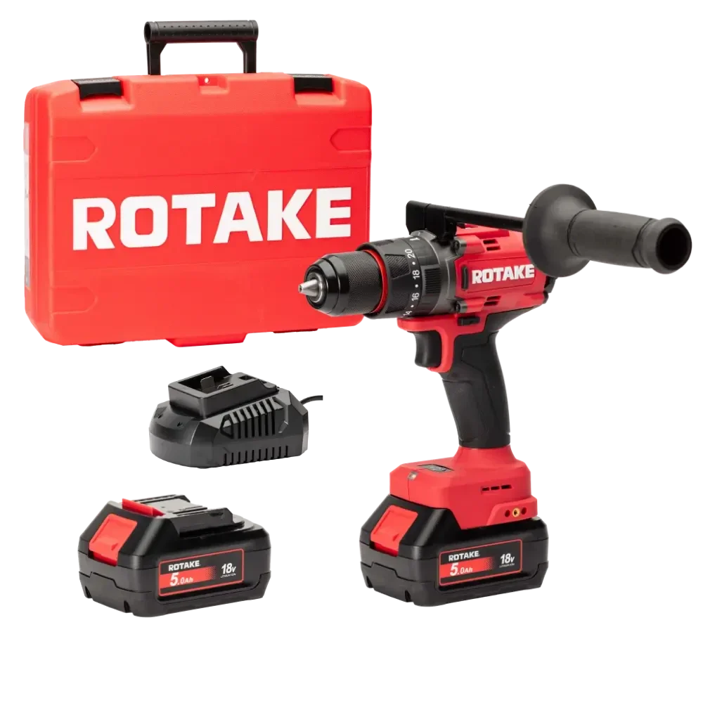 - La perceuse-visseuse à percussion ROTAKE D2H-50D est conçue pour les professionnels et utilisateurs exigeants recherchant puissance, endurance et robustesse. Son moteur sans balais (Brushless) garantit un rendement optimal, une consommation d’énergie maîtrisée et une longévité accrue, même dans des conditions de chantier intensives.