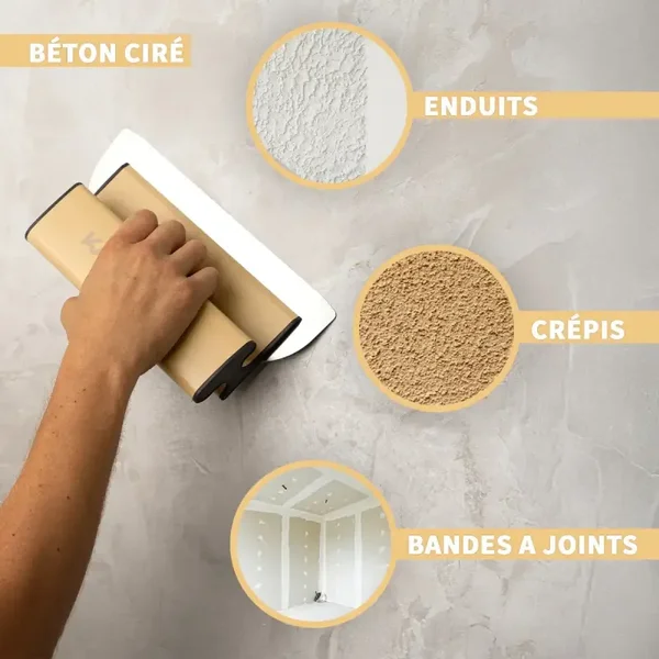 - Utilisé aussi pour l'application de béton ciré sur les murs, escaliers, sols, plans de travails, plafonds et autres.
