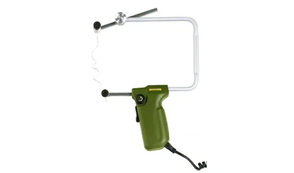 Pour la découpe de plexiglas, fibre de verre, mousse, caoutchouc, cuir ou liège. Bras de scie en aluminium coulé sous pression, mince pour assurer une bonne visibilité par le haut. Soufflette à embout orientable permet une visibilité dégagée sur l'endroit de la découpe. Table solide en fonte d'aluminium sous pression (360 x 180 mm), peut être basculé sur 45° pour des coupes de biais. Chassis de base en fonte d'acier pour une position stable et un travail sans vibrations. Y compris 5 lames de scie à grosse et à fine denture.